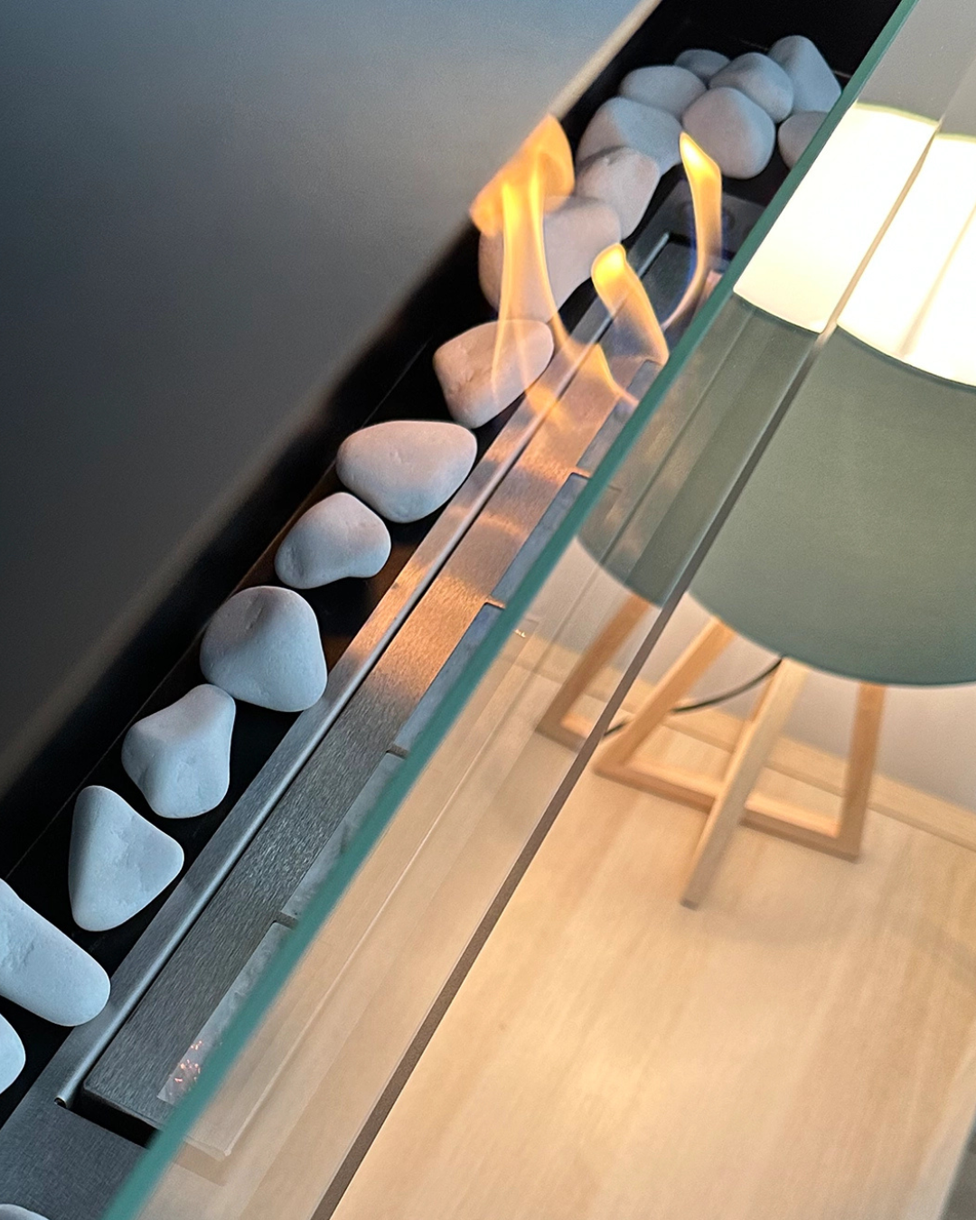 Stenene tilfører et rent, eksklusivt udtryk og kan placeres både inde i pejsen omkring brænderen eller som dekorativ ramme omkring den.