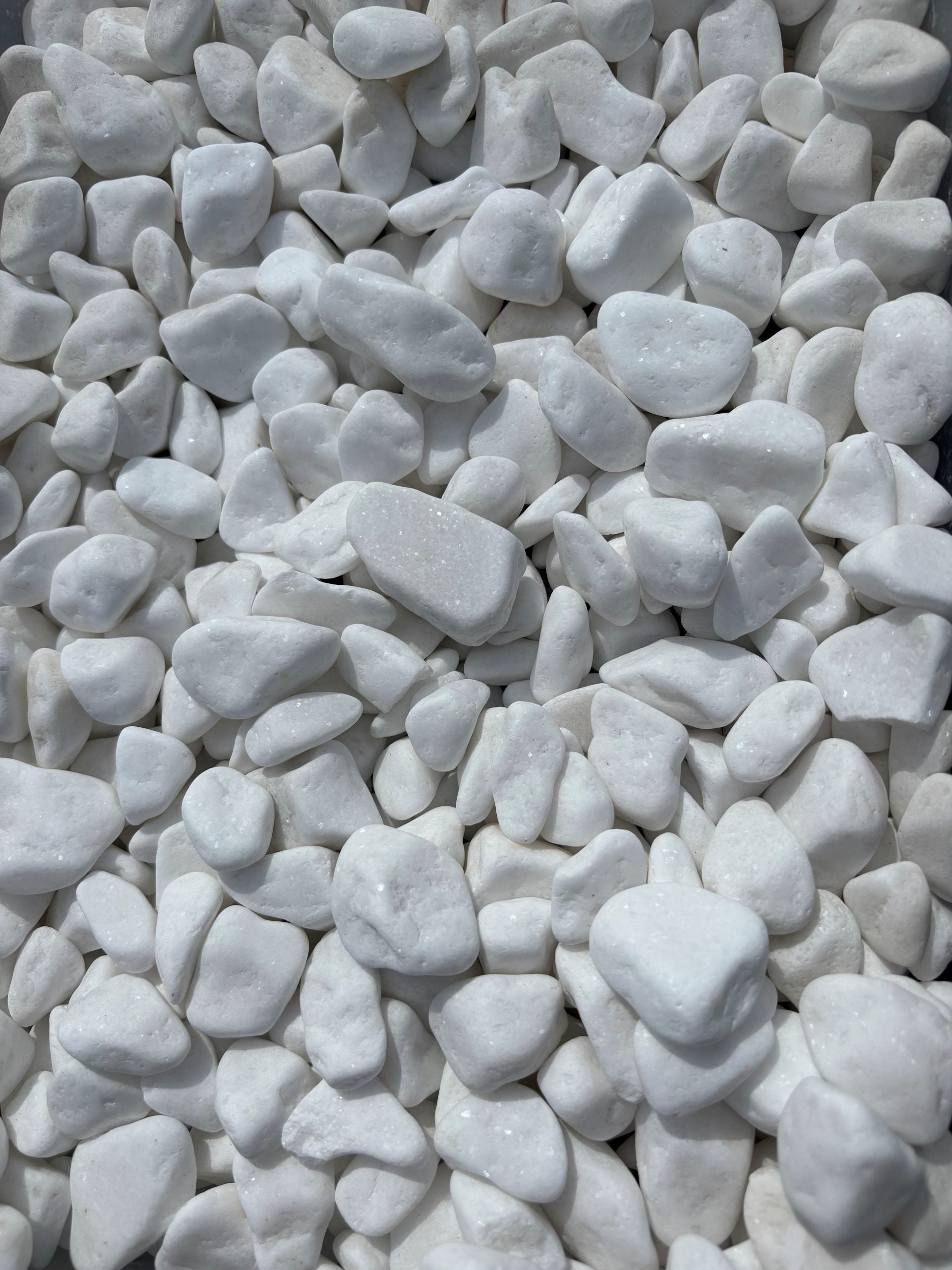 De hvide dekorationssten er håndsorterede natursten fra den græske ø Karpathos med høj tæthed og varmebestandighed på over 300°C. Deres naturlige glans og ujævne struktur fremhæver flammens refleksioner og giver en mere levende oplevelse.